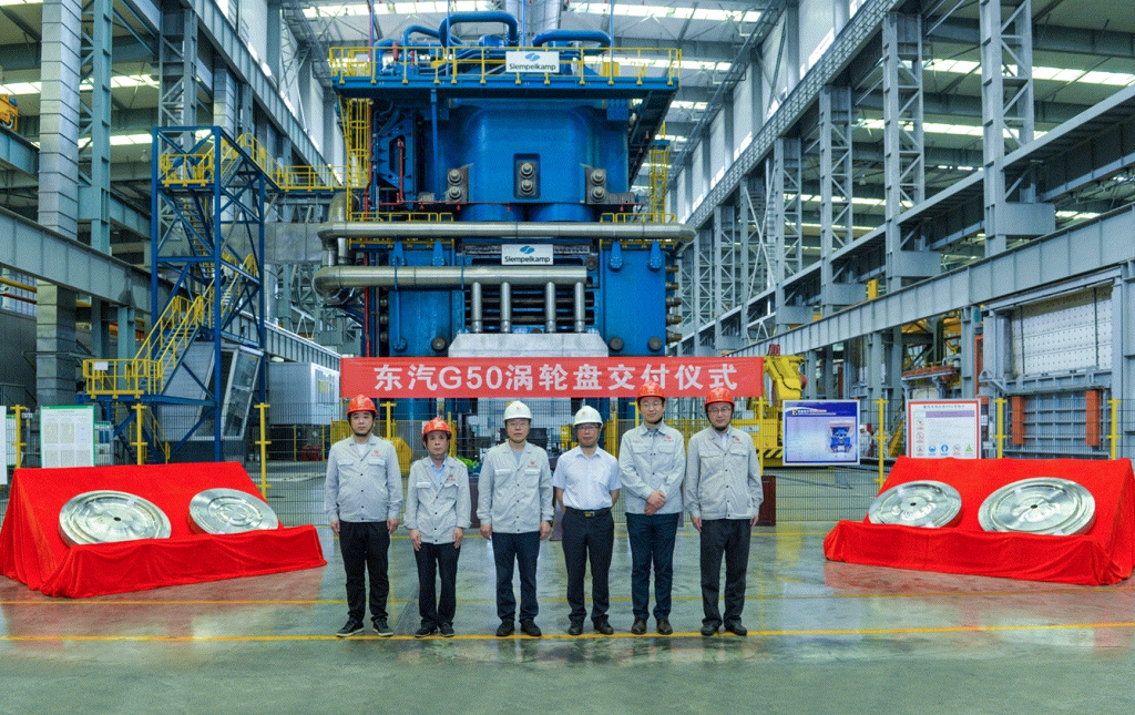 7月20日上午,南山鋁業(yè)鍛造公司向東方汽輪機公司交付“G50渦輪盤”。南山鋁業(yè)總經(jīng)理呂正風、東方汽輪機 G50 項目總工程師趙世全,以及南山鍛造公司相關領導出席交付儀式。
