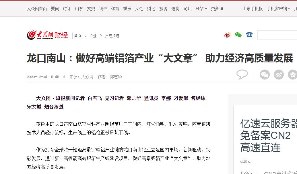 龍口南山:做好高端鋁箔產(chǎn)業(yè)“大文章” 助力經(jīng)濟(jì)高質(zhì)量發(fā)展-大眾網(wǎng)