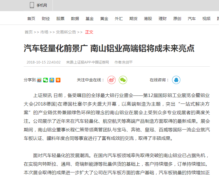 汽車輕量化前景廣 南山鋁業(yè)高端鋁將成未來亮點(diǎn)-