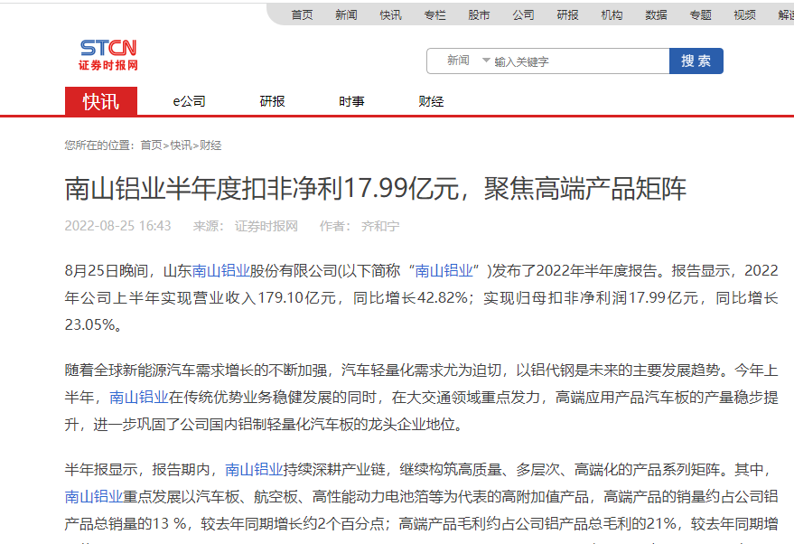 上海證券報(bào):南山鋁業(yè)批量供貨C919 航空板業(yè)務(wù)再拓展
